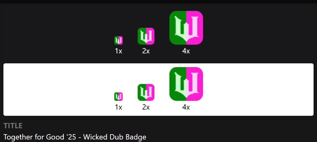➡️ Wicked Dub Badge — за донат от $5 на любом благотворительном стриме через Stream Together.